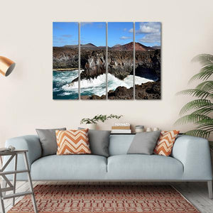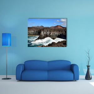 Experience the dramatic beauty of Los Hervideros with this striking canvas wall art. Featuring vibrant coastal cliffs and dynamic ocean waves, this piece captures the natural power of volcanic rock formations. The palette of blues, browns, and grays adds a captivating touch to any space.