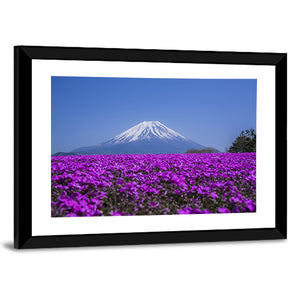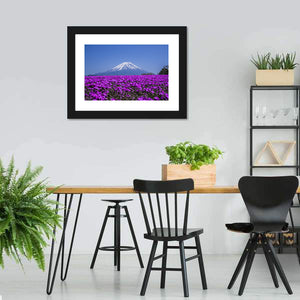This canvas art captures the serene beauty of a snow-capped Mount Fuji, surrounded by a vibrant field of purple flowers. Its realistic depiction invites a peaceful atmosphere, making it an excellent addition to any nature-themed decor.