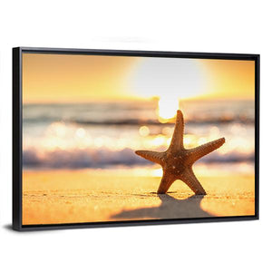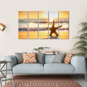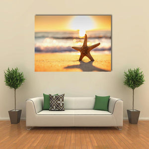 Sea Starfish On The Beach At Sunrise Canvas Wall Art