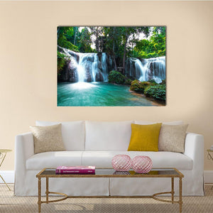 Immerse yourself in the calming beauty of the Than Sawan Waterfall, surrounded by lush greenery and tranquil forest scenes. The refreshing palette of greens and blues captures the serene essence of nature, making it an ideal addition to any wall decor.