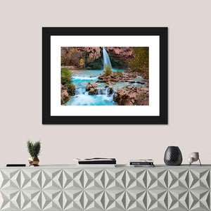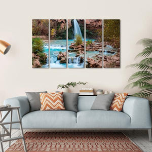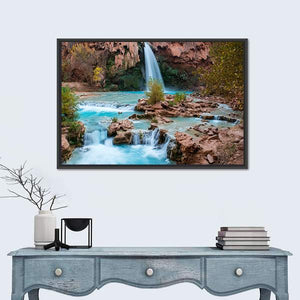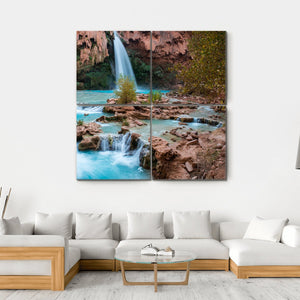 Featuring the serene Havasupai Falls, this canvas wall art captures the refreshing beauty of nature. The vibrant blues and earthy browns of the waterfall, river, and surrounding cliffs bring a sense of calm to any space.