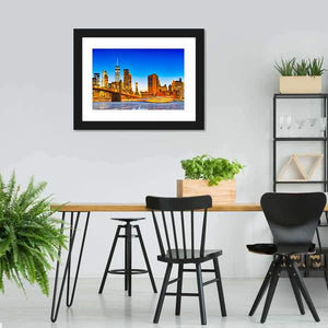 This striking canvas print captures the vibrant New York City skyline and the majestic Brooklyn Bridge. With its lively palette of blue, orange, and yellow, it evokes an energetic atmosphere, perfect for adding a modern touch to your urban decor.