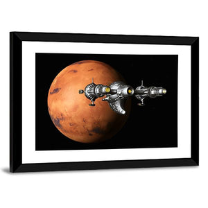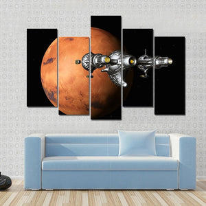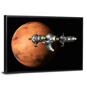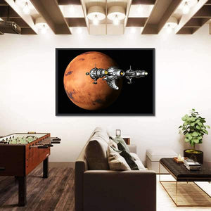 This canvas art captures a spaceship exploring the textured surface of Mars. The vibrant palette of orange, red, and black evokes a cosmic vibe, perfect for any room aiming for a sci-fi feel.