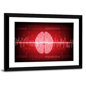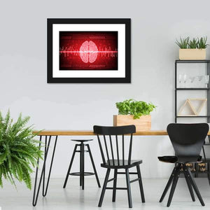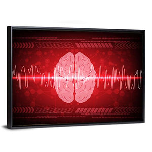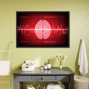 This modern canvas art features a stylized brain graphic intertwined with a heartbeat line visualization, creating a compelling piece that resonates with a scientific vibe. The bold red and white color palette adds a dynamic touch, making it an ideal choice for tech enthusiasts or anyone seeking to enhance their space with a digital theme.