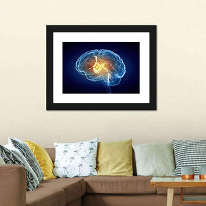 This canvas art features a stunning depiction of the human brain, showcasing glowing internal circuitry within a translucent outline. With a palette of blue, yellow, and black, it conveys a futuristic and analytical mood, perfect for adding a touch of modern science to your space.