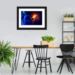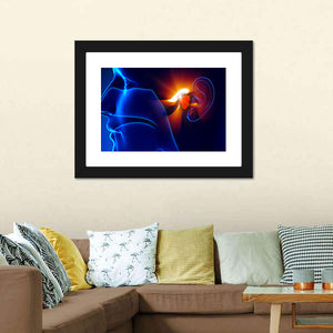 This striking canvas art showcases a detailed illustration of ear anatomy, highlighting the intricate structures of the human head profile. With a palette of blue, orange, and red, it brings a scientific and informative vibe to your space.