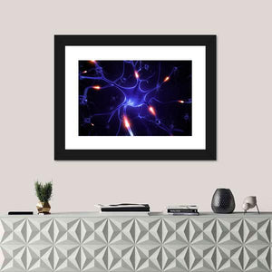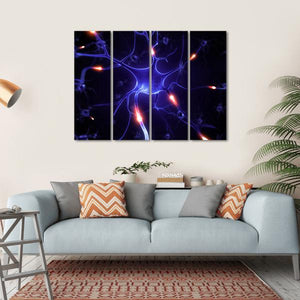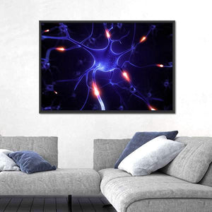 This vibrant canvas features a close-up illustration of a nerve cell, capturing the intricate complexity of neurons and their connections. The dynamic palette of blue, purple, orange, and black creates a scientifically energetic vibe, perfect for any space that celebrates the beauty of science.