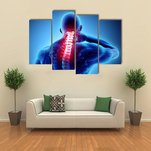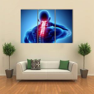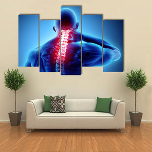 This striking canvas art captures a close-up view of a human spine, vividly illustrating neck pain through a stark medical perspective. The glowing red spine against a backdrop of blue and white conveys an intense, impactful mood, making it a powerful focal point for any space.