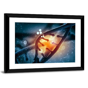 This canvas art features a close-up illustration of a DNA molecule, capturing its intricate double helix structure. With a palette of blue, orange, and white, it exudes a scientific and awe-inspiring atmosphere that complements modern decor beautifully.