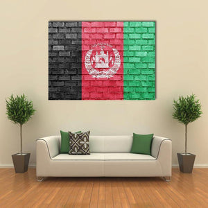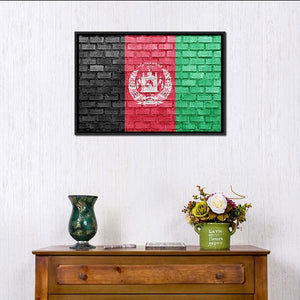 This striking canvas art features the Afghanistan flag against a textured brick background. It evokes a sense of pride and patriotism with its bold palette of black, red, green, and white, making it a compelling addition to any room's decor.