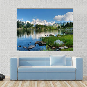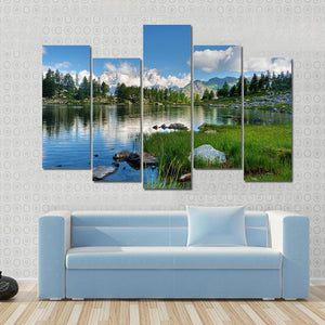 Capture the serene beauty of Arpy Lake with this canvas wall art. Featuring snow-capped mountains, lush pine trees, and a tranquil blue sky, it's a perfect piece for nature lovers seeking to add a calming vibe to their space.