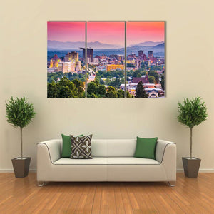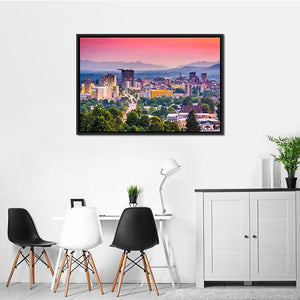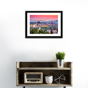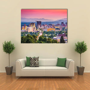 Experience the serene beauty of the Asheville skyline in this vibrant canvas wall art. Featuring a stunning blend of modern architecture, distant mountains, and lush trees, it captures the essence of this beloved city in a landscape orientation.