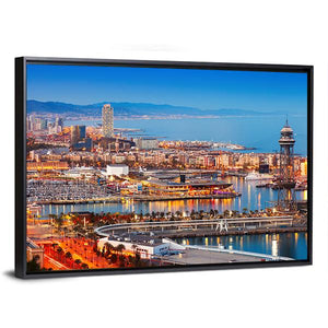 Barcelona Night Harbor Skyline Canvas Wall Art