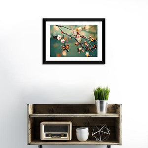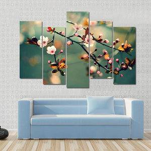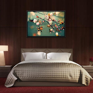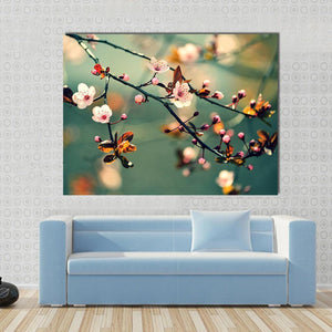 This canvas art features delicate cherry blossoms and textured branches, captured in a serene, close-up composition. The soft palette of pink, white, and green brings a natural touch to any space.