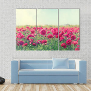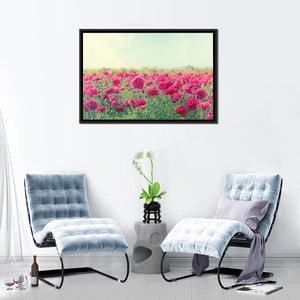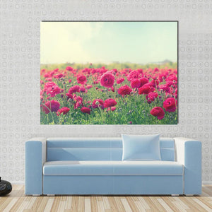 This canvas art beautifully showcases a field of vibrant pink flowers against a serene sky and green grass. The soft focus effect enhances the peaceful atmosphere, making it a lovely addition to any nature-inspired decor.