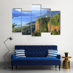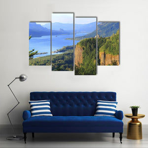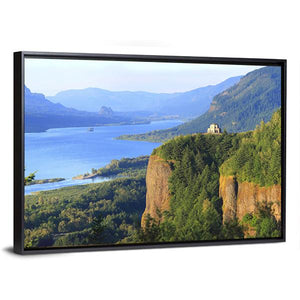 This canvas wall art captures the serene beauty of the Columbia River, framed by majestic cliffs and lush forests. Its realistic portrayal invites a natural ambiance into any space, perfect for bringing the outdoors inside.