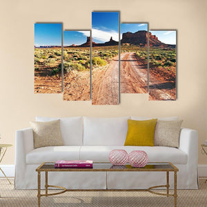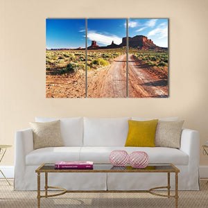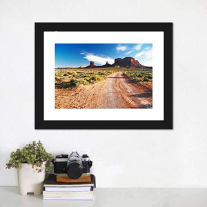 This captivating canvas portrays a desert road winding through majestic rock formations, under a vast blue sky. The realistic style and vibrant palette evoke feelings of adventure and peace, making it a perfect addition to any nature-inspired decor.