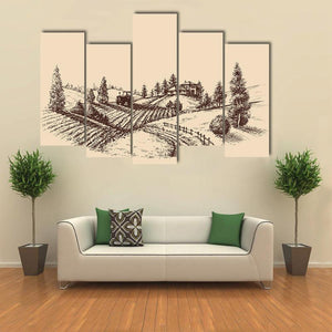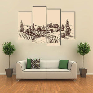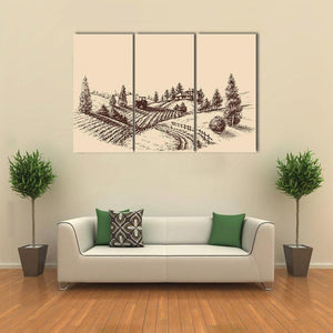 Etched Farm Landscape Canvas Wall Art