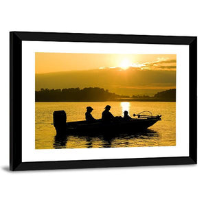 Capture a serene moment with this canvas wall art featuring fishermen silhouetted against a tranquil sunset over the water. The harmonious blend of warm oranges and yellows evokes a peaceful vibe, making it a great addition to any room.