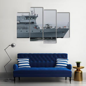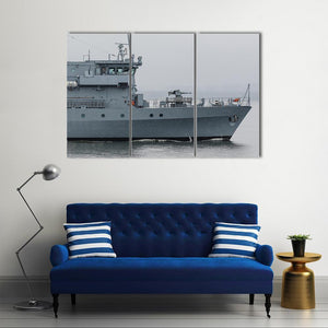This canvas features a striking naval ship, captured in a somber and industrial palette of gray, blue, and white. Its photorealistic detail brings a calm yet powerful presence to any space.