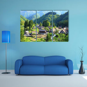 This canvas art piece captures a serene village in Gokayama, framed by lush mountains and traditional houses. The calming greens, browns, and blues create a natural, peaceful atmosphere, making it a lovely addition to any wall decor.