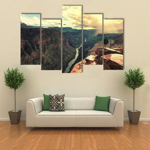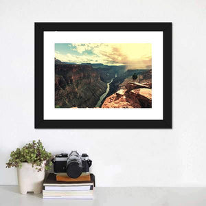 Experience the awe of nature with our Grand Canyon Landscapes canvas art. This striking piece captures majestic mountains and a serene river, complemented by sunbeams breaking through the clouds, perfect for bringing a sense of adventure into your home.
