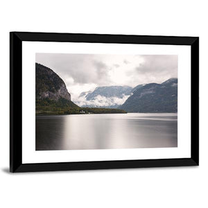 This canvas art captures the serene beauty of Hallstatter See, featuring a tranquil lake embraced by moody mountains and fog. Its modern, minimalist style enhances any space with a touch of nature's calm.