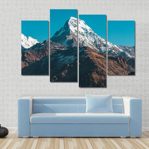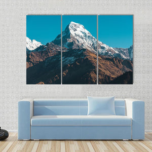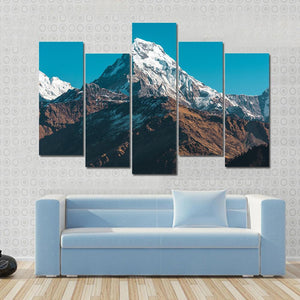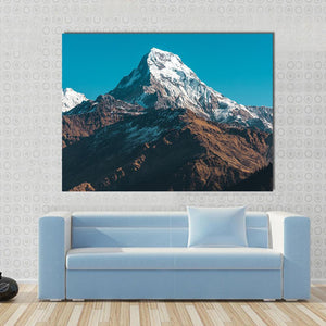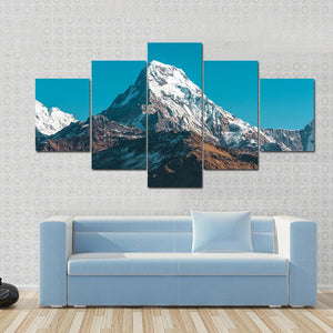 This canvas art features majestic snow-capped mountains under a clear blue sky. The realistic portrayal captures the adventurous spirit of nature, making it a perfect fit for any room in your home.