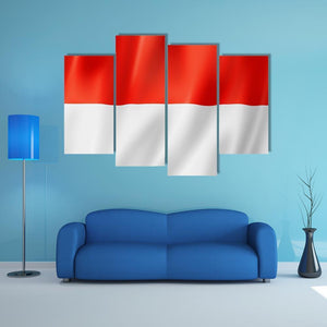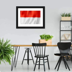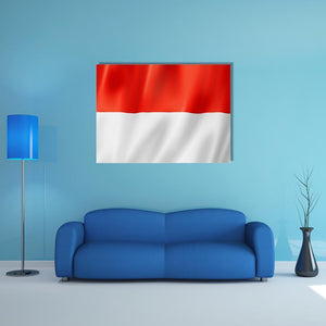 This canvas depicts the flag of Indonesia — a red stripe over a white stripe — presented in a clean, symmetrical modern composition that feels proud and patriotic. Its bold red-and-white palette and minimalist style suit modern home decor and room displays.