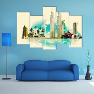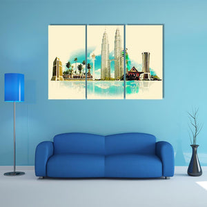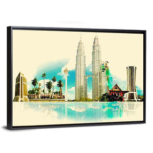 This vibrant canvas art features Kuala Lumpur's iconic skyscrapers and palm trees, reflecting beautifully on water. Its modern watercolor style creates a serene atmosphere, making it a striking addition to any room.
