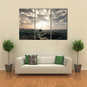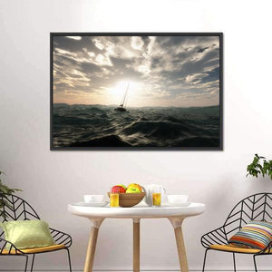 This canvas art features a sailboat bravely navigating a stormy sea. The dramatic interplay of waves and clouds, along with the sun peeking through, evokes a sense of adventure and tranquility. Perfect for any modern room looking to capture the essence of nature's power.