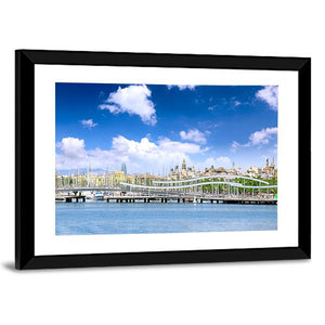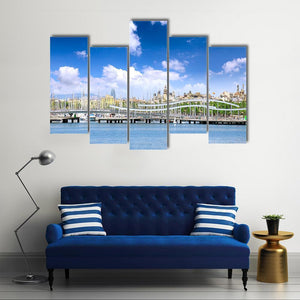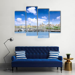 This vibrant canvas depicts a sunny day at the Barcelona sea port, featuring boats and a cityscape with blue waters and soft clouds. Its bright colors and realistic style bring a cheerful atmosphere to any space.