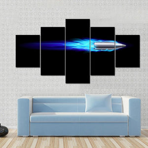 This dynamic abstract artwork features a bullet with a striking blue flame trail, evoking a sense of speed and intensity. The bold palette of black, blue, and silver enhances its modern appeal, making it a captivating piece for your wall decor.