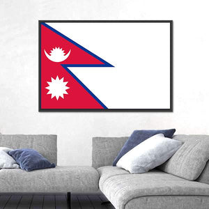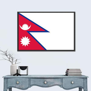This Nepal Flag Canvas Wall Art depicts the national flag with its moon and sun in a minimalist, asymmetrical composition. The red, white, and blue palette gives a quiet, patriotic mood that suits modern home decor and contemporary rooms.