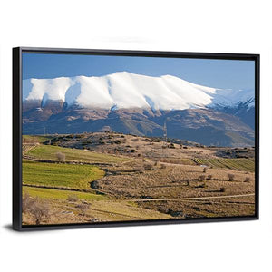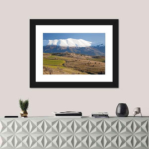 This stunning canvas art captures serene snow-capped mountains, rolling hills, and vibrant green fields. Its photorealistic style brings the majestic beauty of nature into your space.