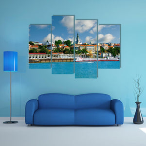 This canvas art beautifully depicts the Orthodox Church along the River Sava. With a vibrant palette of blue and white, it captures a peaceful, sunny atmosphere, perfect for enhancing any space.