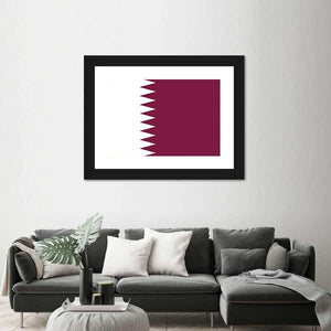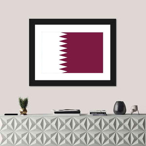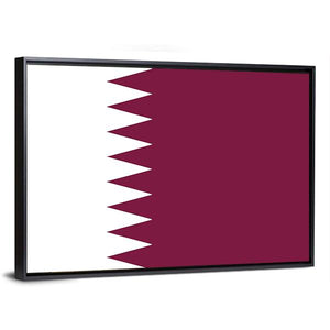 Qatar flag rendered in a graphic, modern style using the flag’s maroon and white palette. The symmetrical layout and serrated edge between colors create a bold, nationalistic look that works well in modern home and room decor.