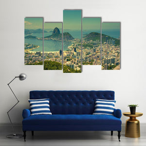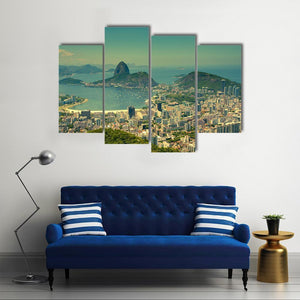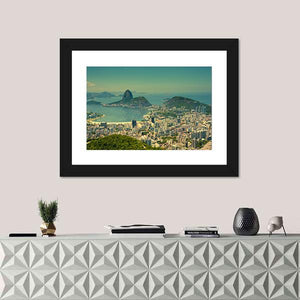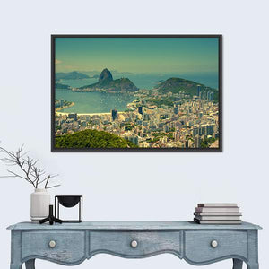 This vibrant canvas print captures the stunning cityscape of Rio de Janeiro, featuring Sugarloaf Mountain and the lush Botafogo Bay. With a sunny palette of blue and green, it brings a sense of expansiveness to any space.