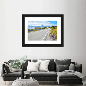 This canvas art captures the serene journey along Norway's Atlantic Ocean Road. With leading lines guiding your eye through the rocky shoreline under a cloudy sky, it evokes a sense of vastness and tranquility.