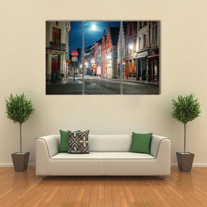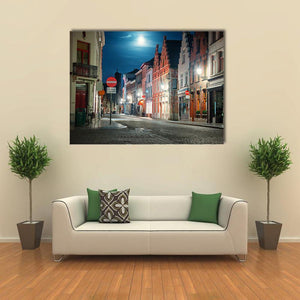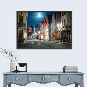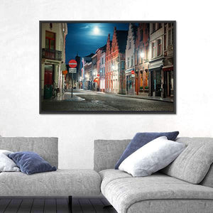 Moonlit Street in Brugge, Belgium Canvas Wall Art