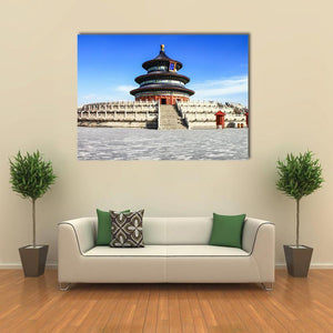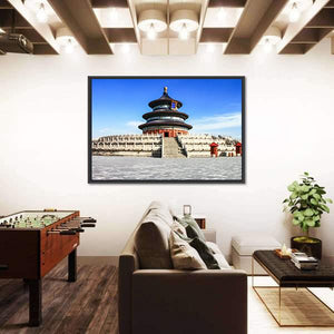 This canvas art features the iconic Temple of Heaven, showcasing its majestic architecture in shades of blue, red, and gold. With a serene and historical mood, it invites contemplation and reverence, ideal for enhancing any living space.
