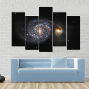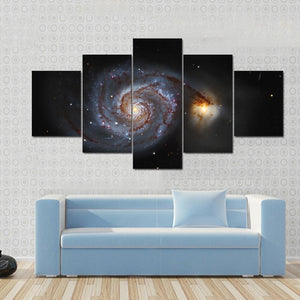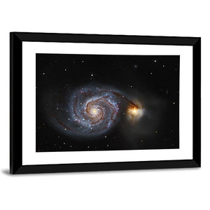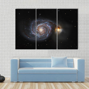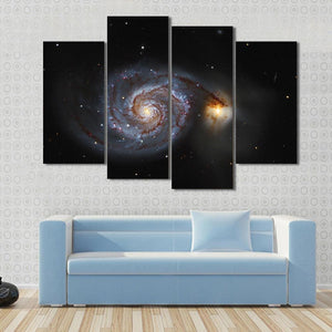 Experience the vastness of deep space with The Whirlpool Galaxy Canvas Wall Art. This photorealistic depiction captures detailed spiral arms and a bright galactic core, inviting a sense of cosmic awe into your home decor.