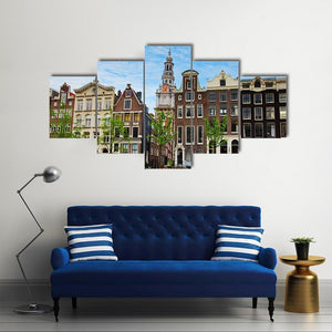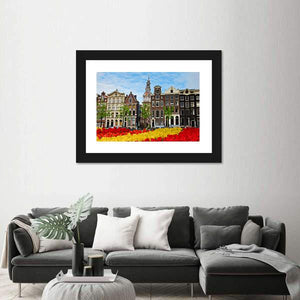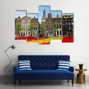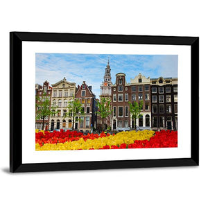 Tulips and Canal Houses in Amsterdam Canvas Wall Art