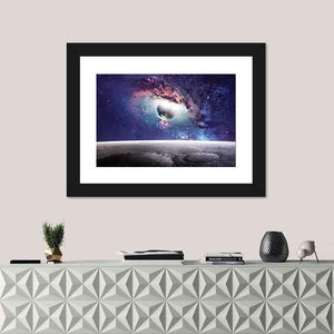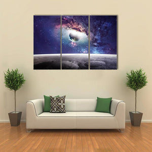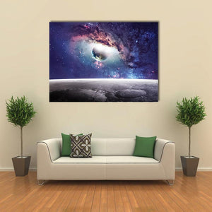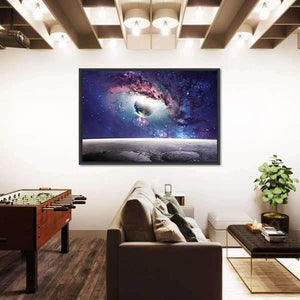 This canvas art captures a cosmic universe filled with planets, galaxies, and nebulae. Its deep blues and purples create a surreal atmosphere, making it a stunning addition for modern space enthusiasts.
