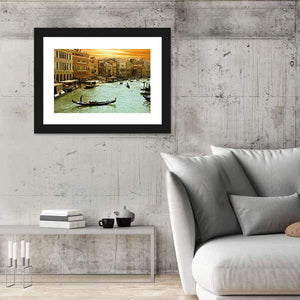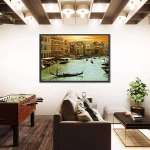 This canvas art captures the serene beauty of Venice's Grand Canal, showcasing gondolas and historic architecture under a warm, golden sunset. Its rich palette of gold, green, and brown adds elegance to any space.