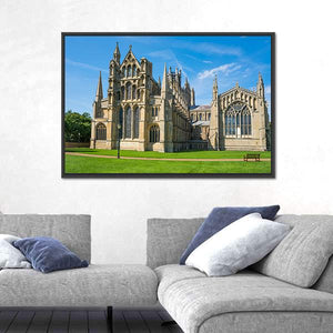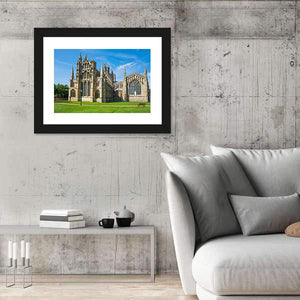 This canvas art captures the serene beauty of a cathedral set against a bright blue sky and lush lawn. With its realistic depiction of Gothic architecture, it adds a touch of majesty to any space.