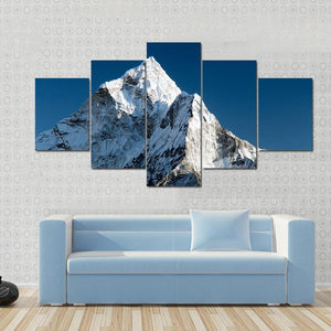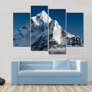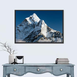 This canvas wall art features a breathtaking view of Mount Ama Dablam, showcasing its snow-capped peak against a serene blue sky. The sharp mountain ridges and wispy clouds create a majestic atmosphere, making it an ideal addition to any nature lover's decor.