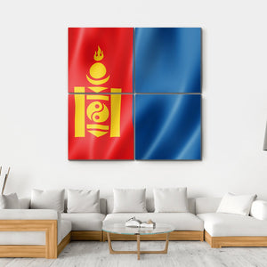 This vibrant canvas art showcases the Mongolia flag, featuring the bold colors of red, blue, and yellow. Its symmetrical design and waving flag effect evoke a strong nationalistic spirit, making it a powerful statement piece for your decor.