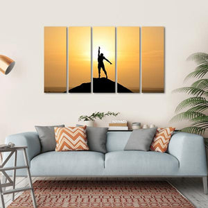 This striking piece features a silhouette of a businessman against a backdrop of mountains, symbolizing success and triumph. The warm orange and yellow tones blend beautifully, creating a peaceful yet inspiring vibe, perfect for any modern space.