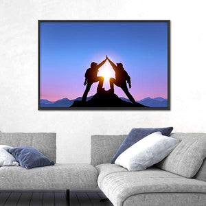 Silhouette Of Two Man With Success Canvas Wall Art